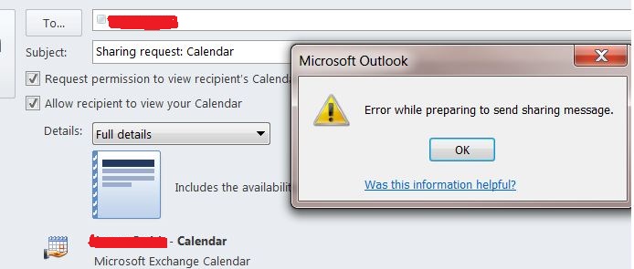 “when you share the calendar in outlook, search for the contacts in Global Address List then select them that way. Don’t try the email address.